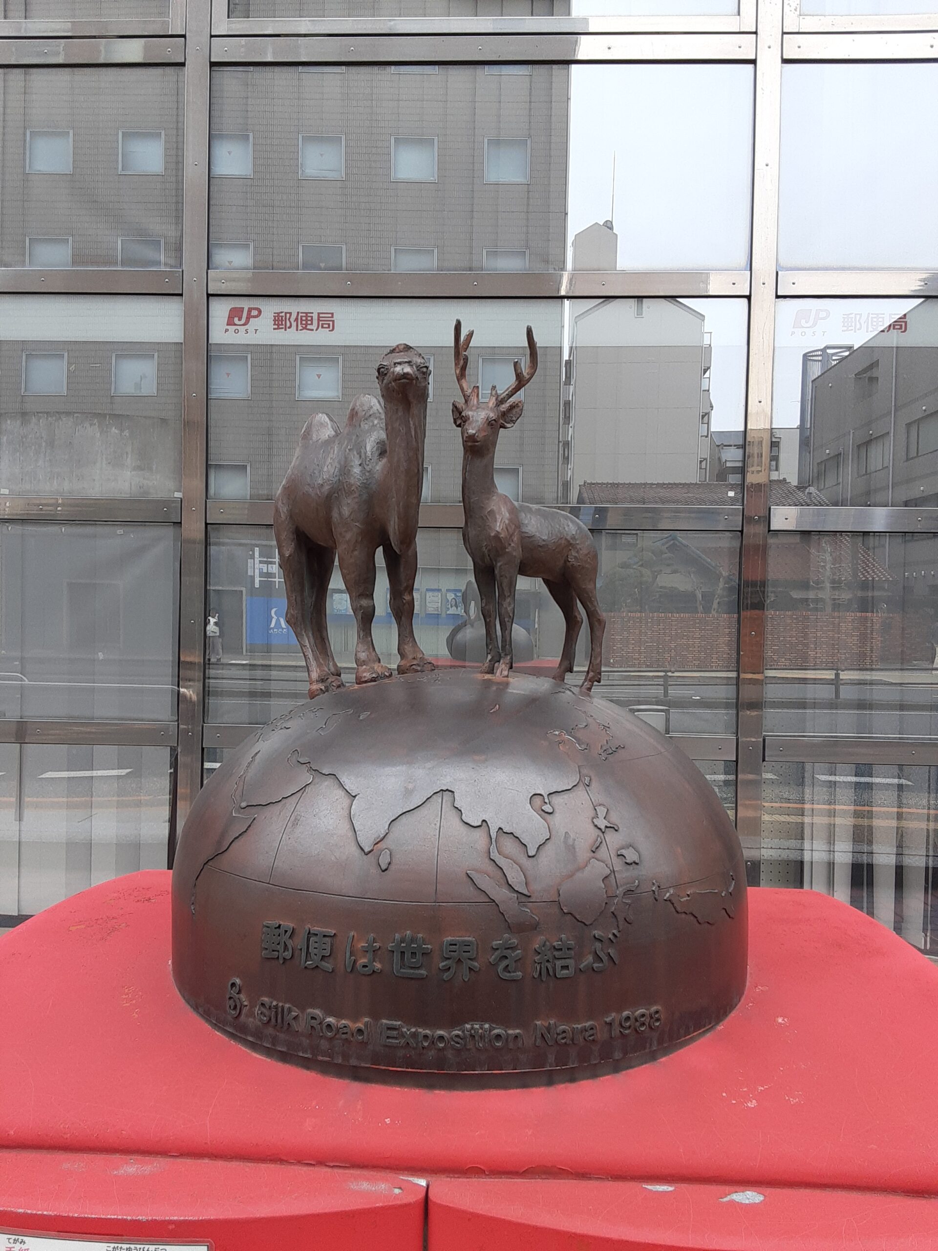 写真は奈良中央郵便局前のポストにあるシカとラクダのモニュメント。1988年のシルクロード博の時のもののようです。この郵便のようなものにならなければ。